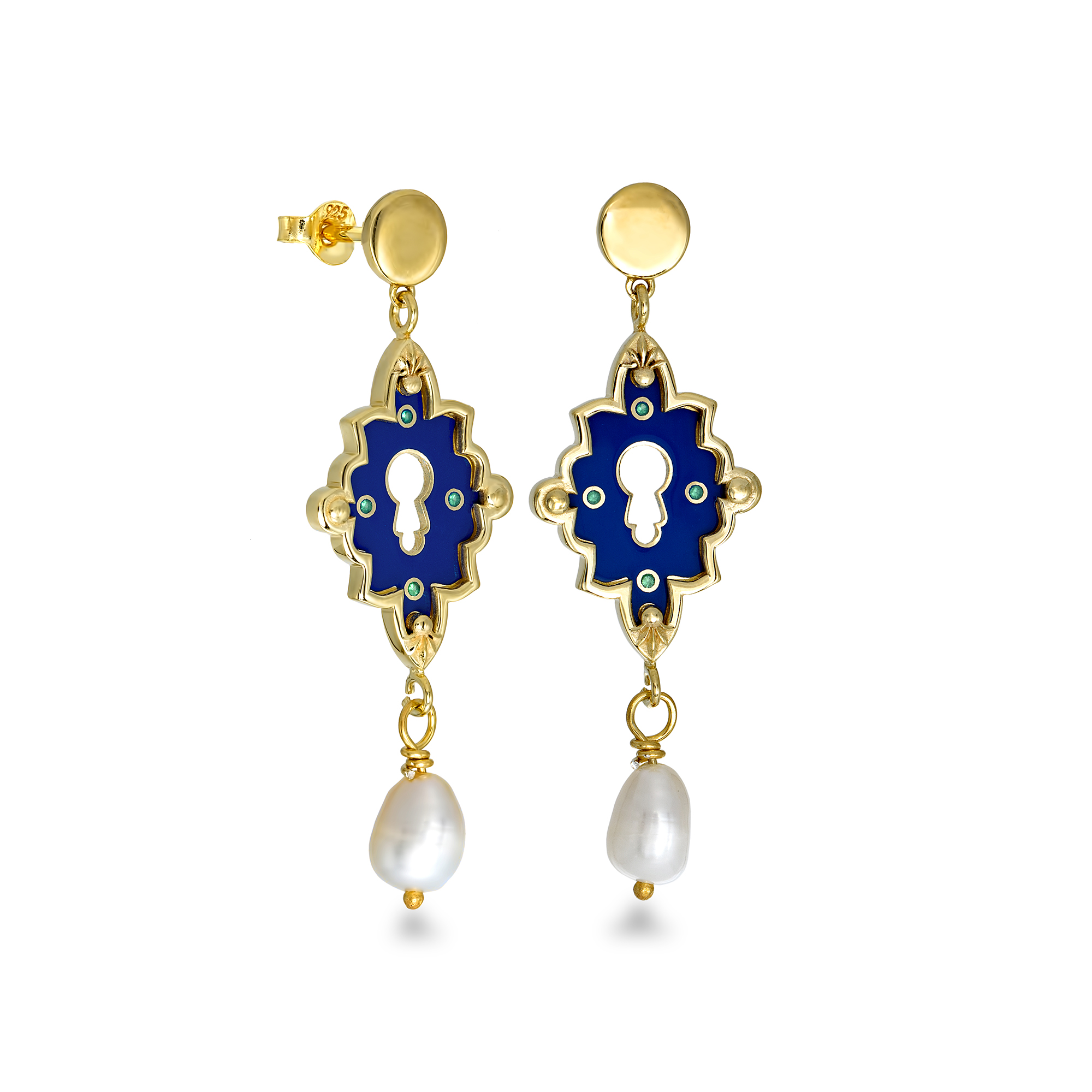 18K gold-plated 925 silver with blue enamel