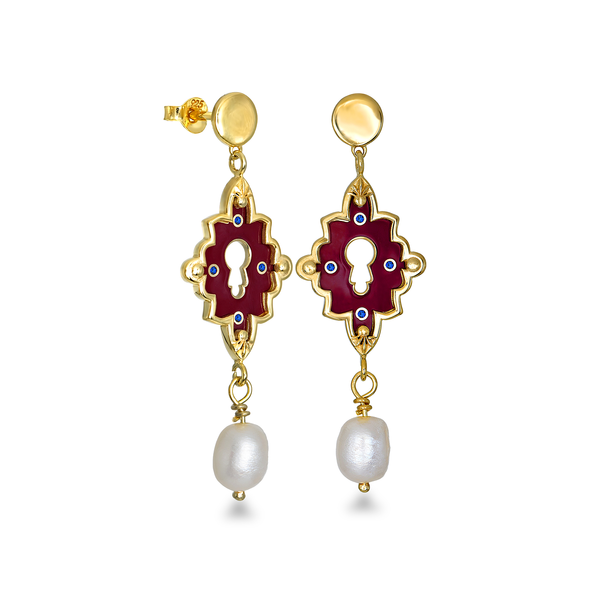 • 18K gold-plated 925 silver with burgundy enamel