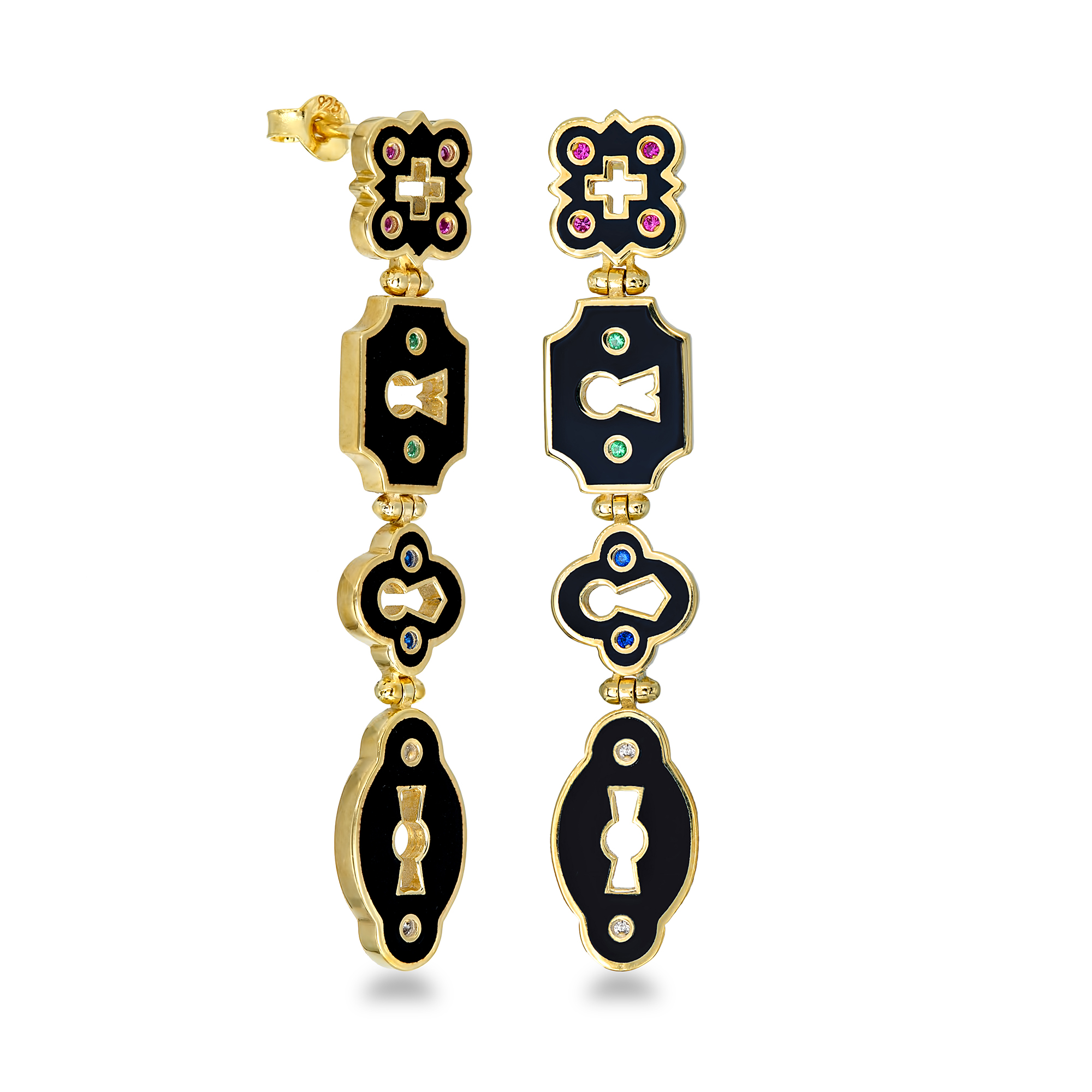 18K gold-plated 925 silver with black enamel